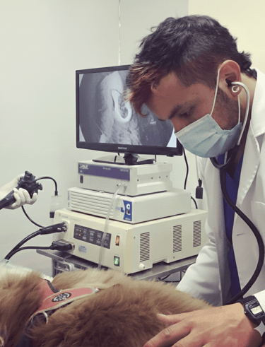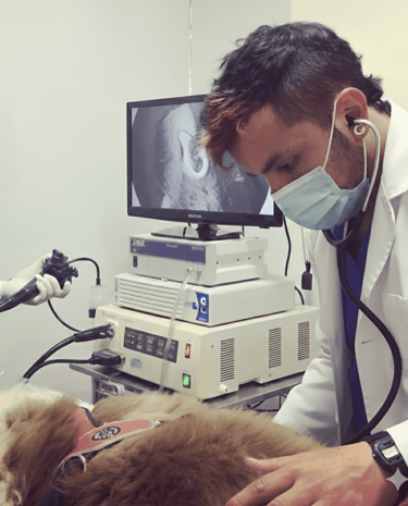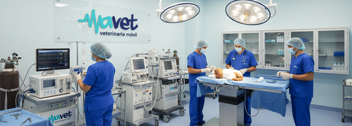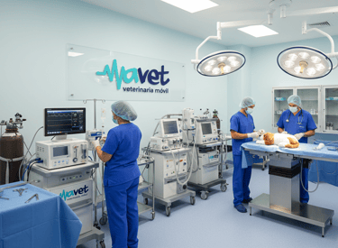 Servicio de anestesia para clínicas veterinarias, basado en evaluación preanestésica, selección de protocolos individualizados y soporte anestésico integral.
